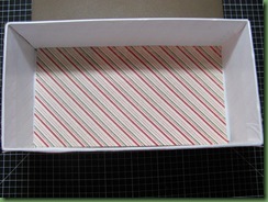 Put the striped paper in the bottom of the box.